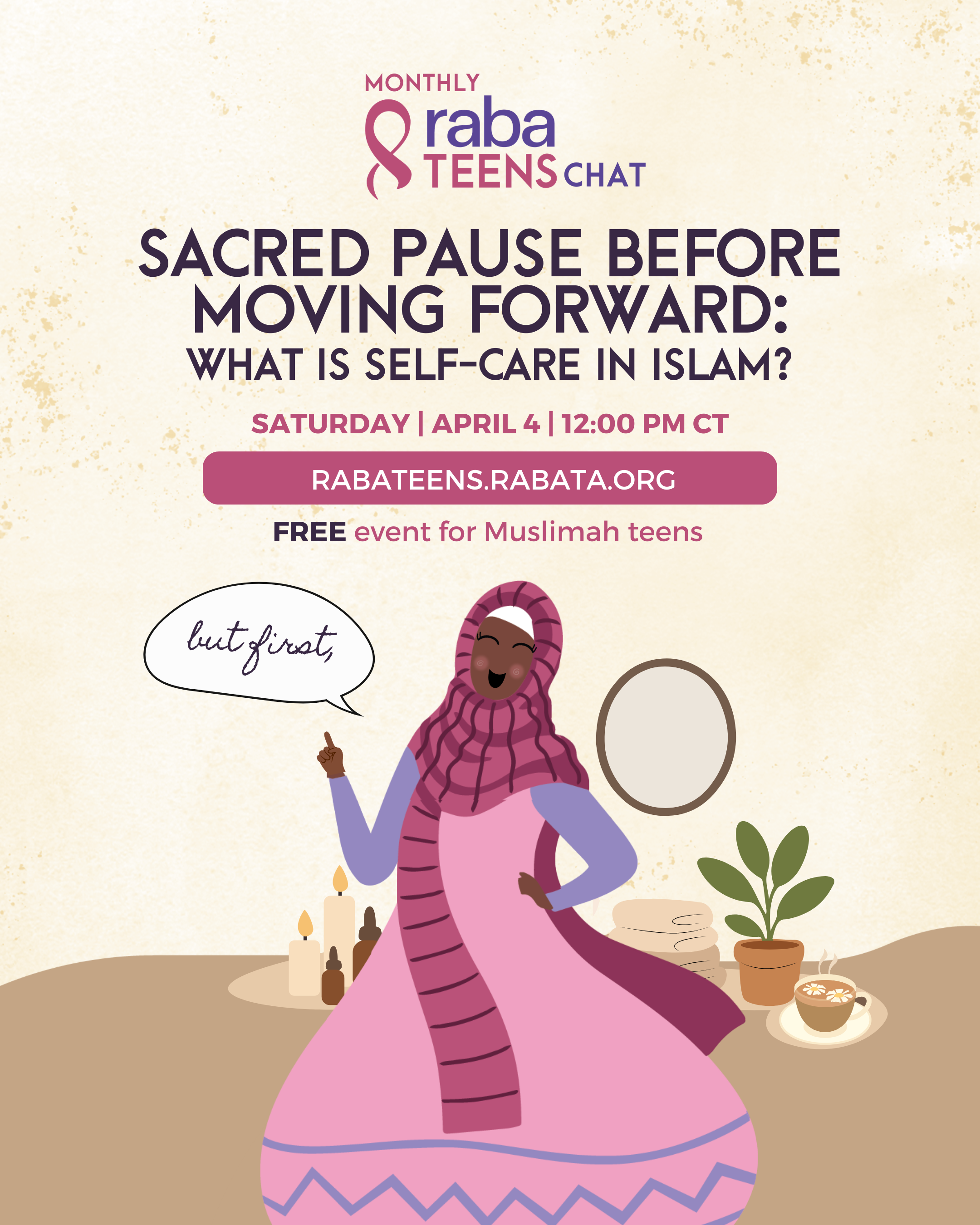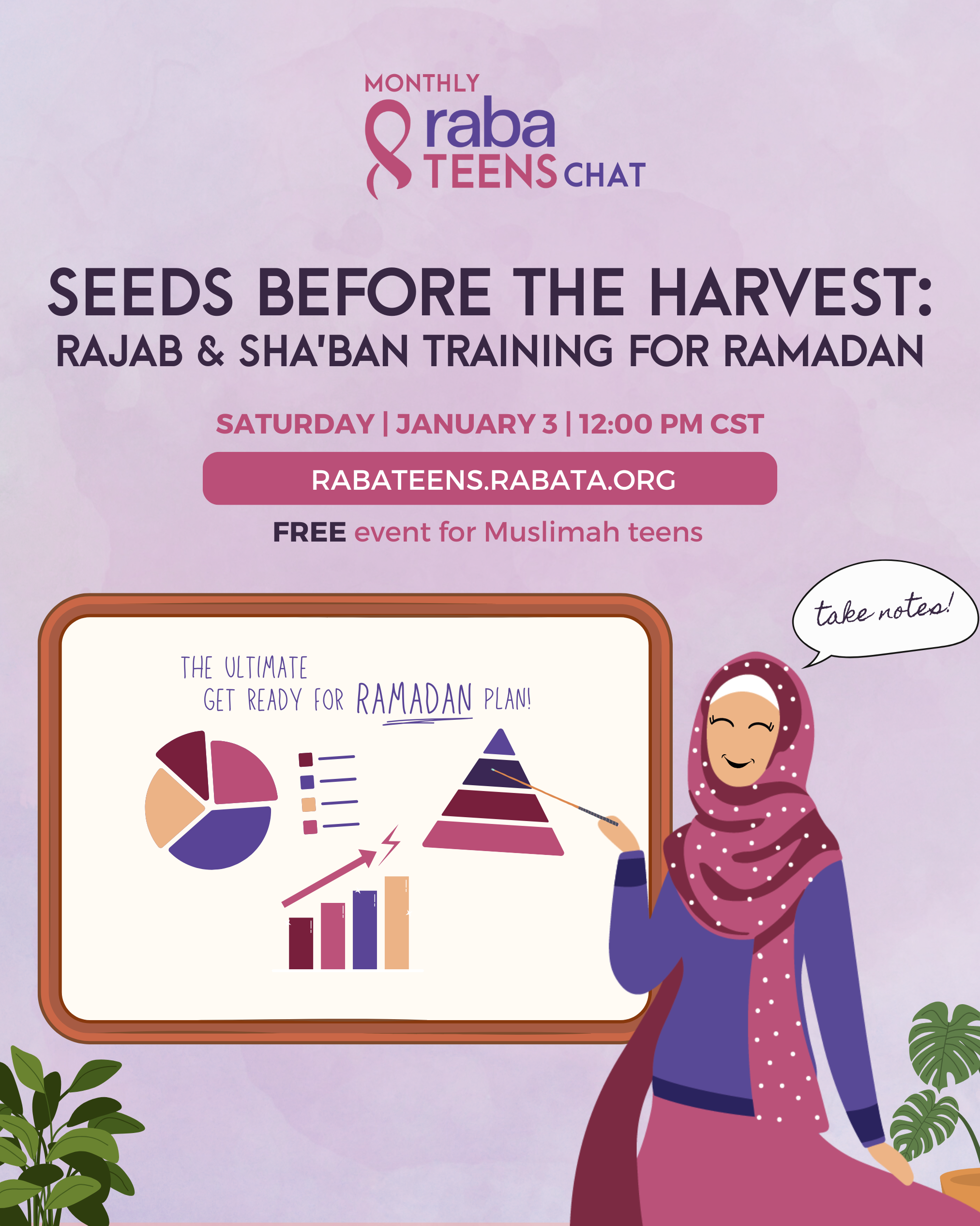 The monthly chat meets the first Saturday of every month. The chat is the perfect space for to meet new Muslim teens, engage and connect with Rabata teachers and guest speakers, learn about exciting and relevant topics, and have an opportunity to share your opinions and thoughts!