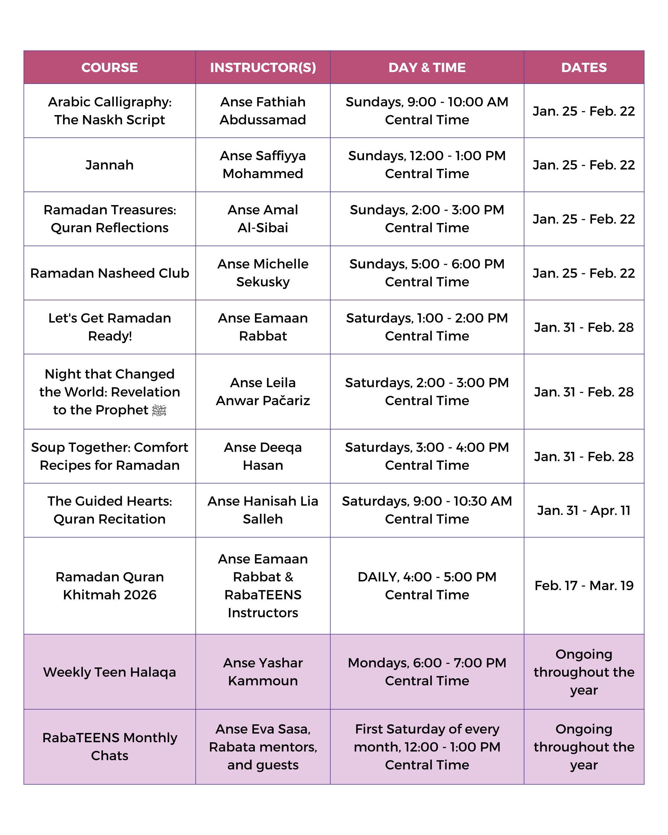 (except for The Guided Hearts: Quran Recitation and Ramadan Quran Khitmah 2026)